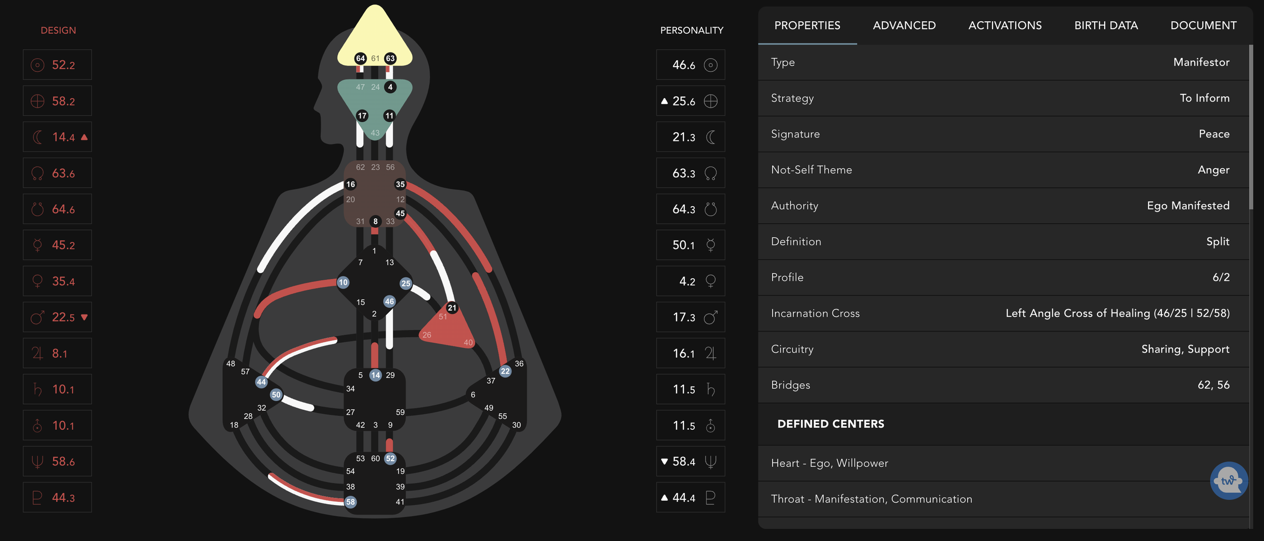 It outlines features in your Body and Personality, and creates the framework to understand how your energy flows together.