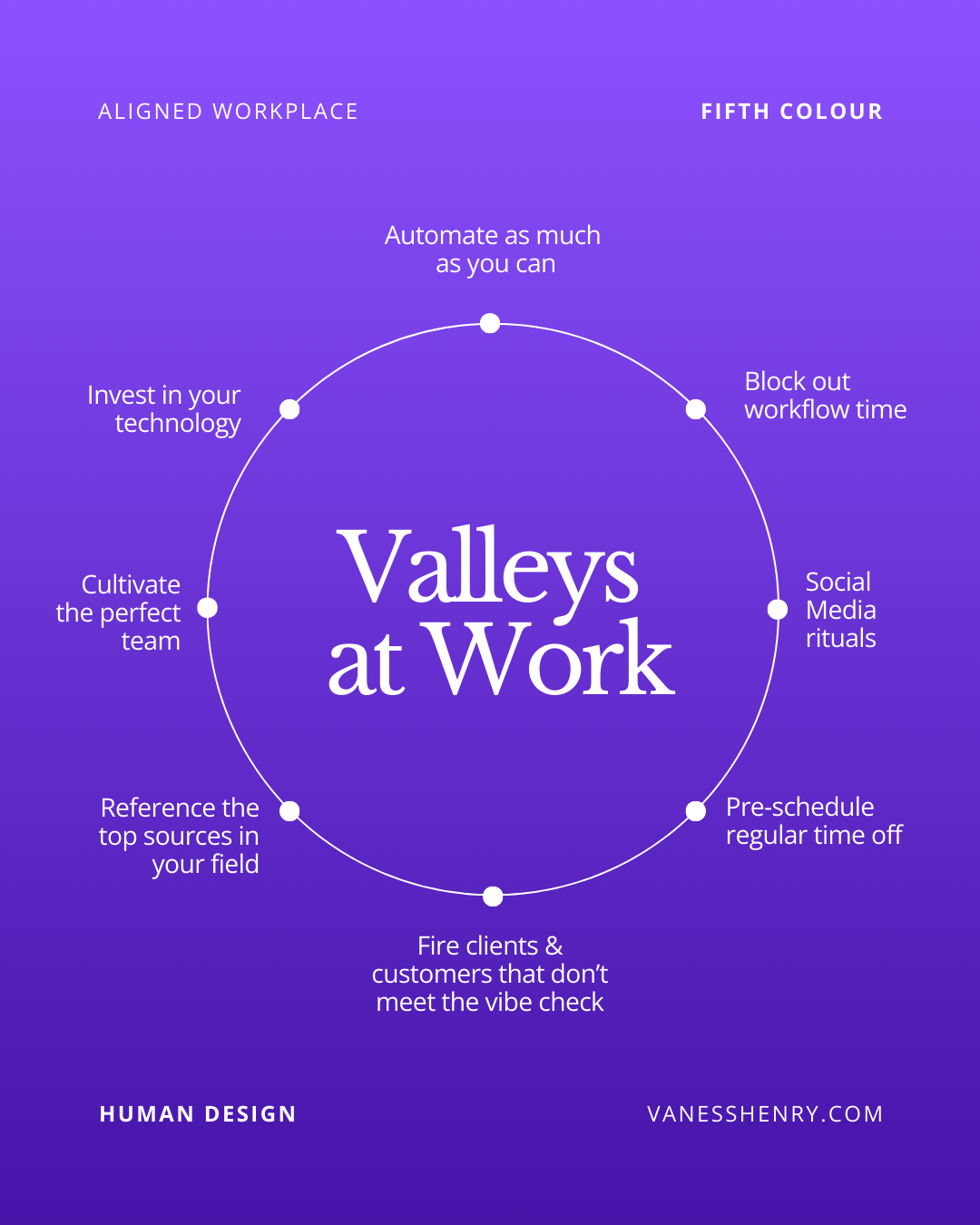 This can be times where you go through your emails or check in with your finances or goals. Have regular check-in routines or self-care rituals lined up on a rhythmic basis. Yes you can build self-care into your work! Work/Life balance is something that is very important for Valleys People. This helps move you into a deep life flow and rhythm, with connection to sources that feed and nourish you. Consider how things like massages, or facials, or walks, or marathons, etc could be a nourishing cadence to move into, but also consider how regularly filing your taxes, checking in with your mentor, coach, or assistant, or having friendly masterminds with coworkers can benefit your work life.