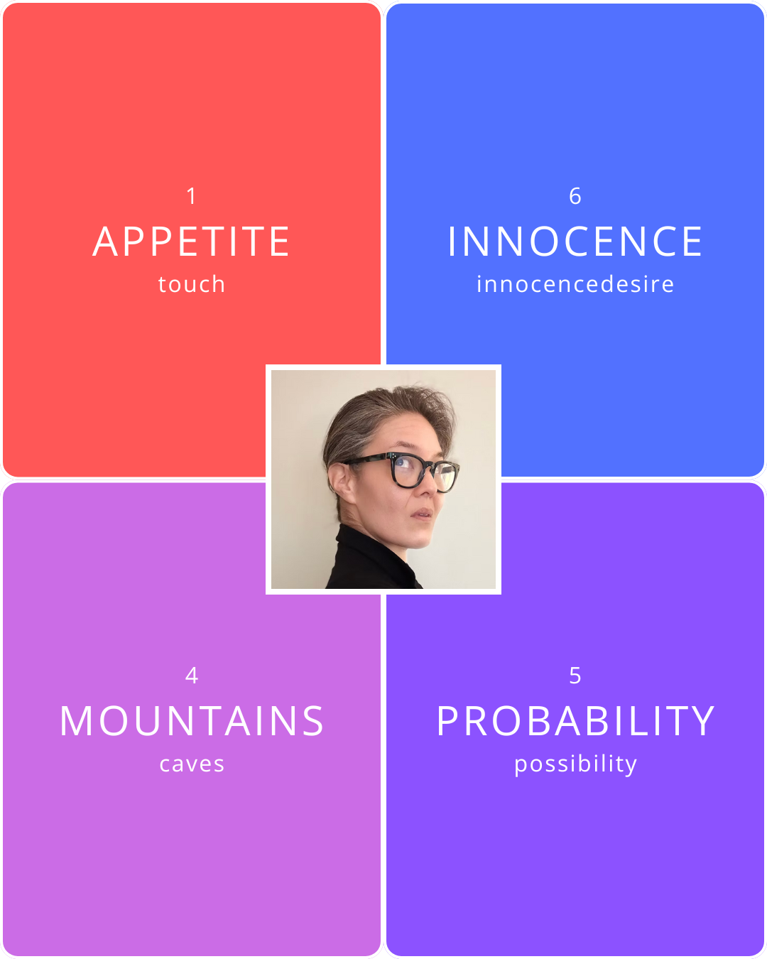 Colour Palette: Appetite / Mountains / Probability / Innocence